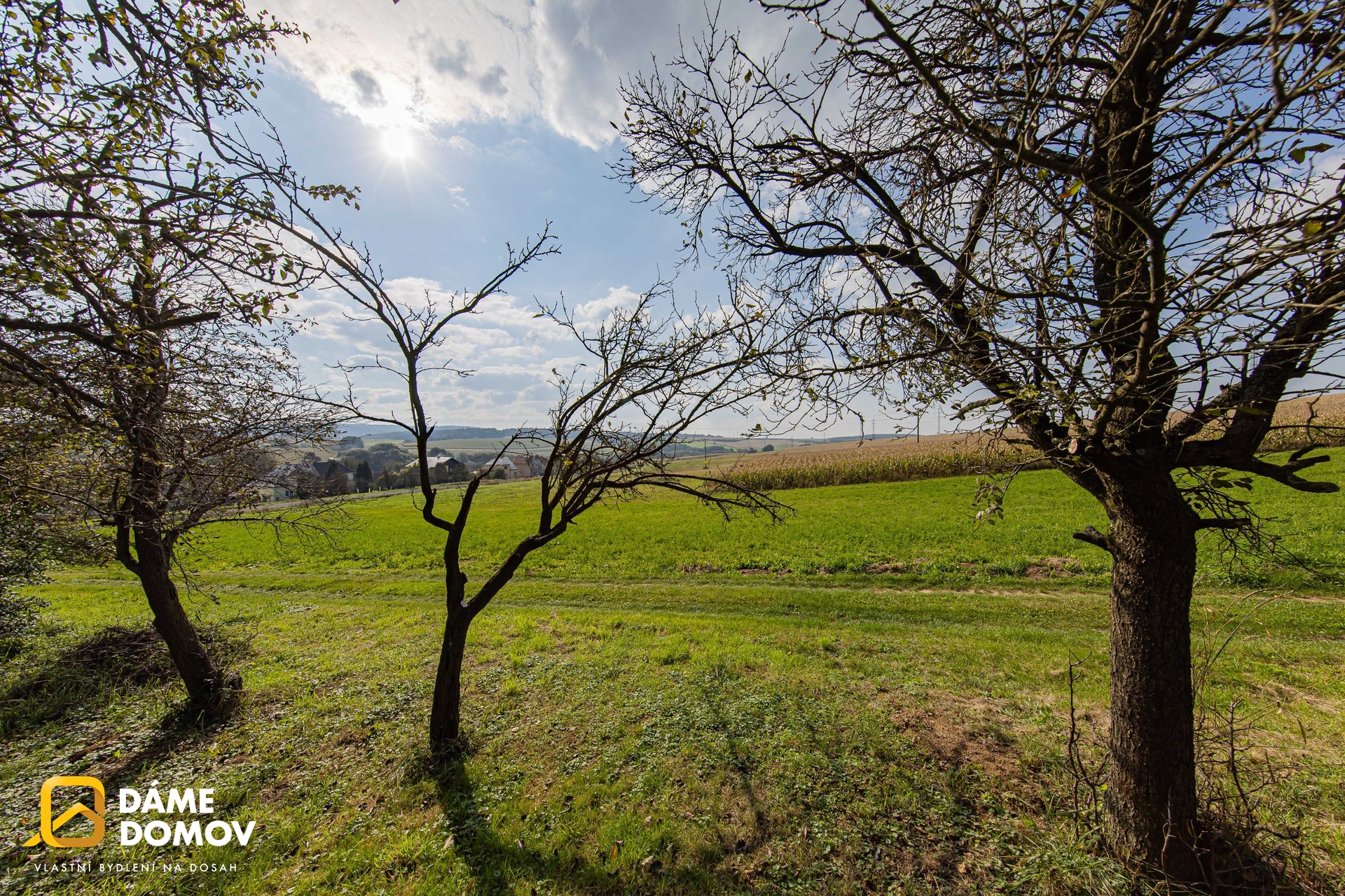 Na zahradě se nachází ovocné stromy a z její zadní části je působivý výhled do okolních polí a přírody.